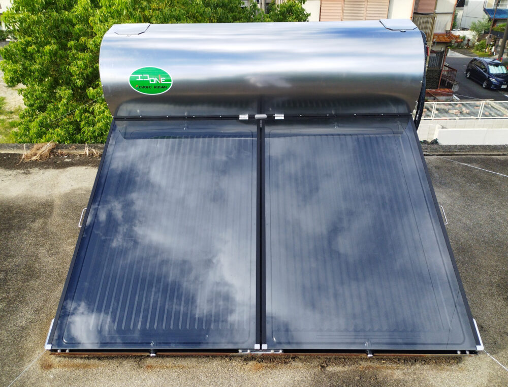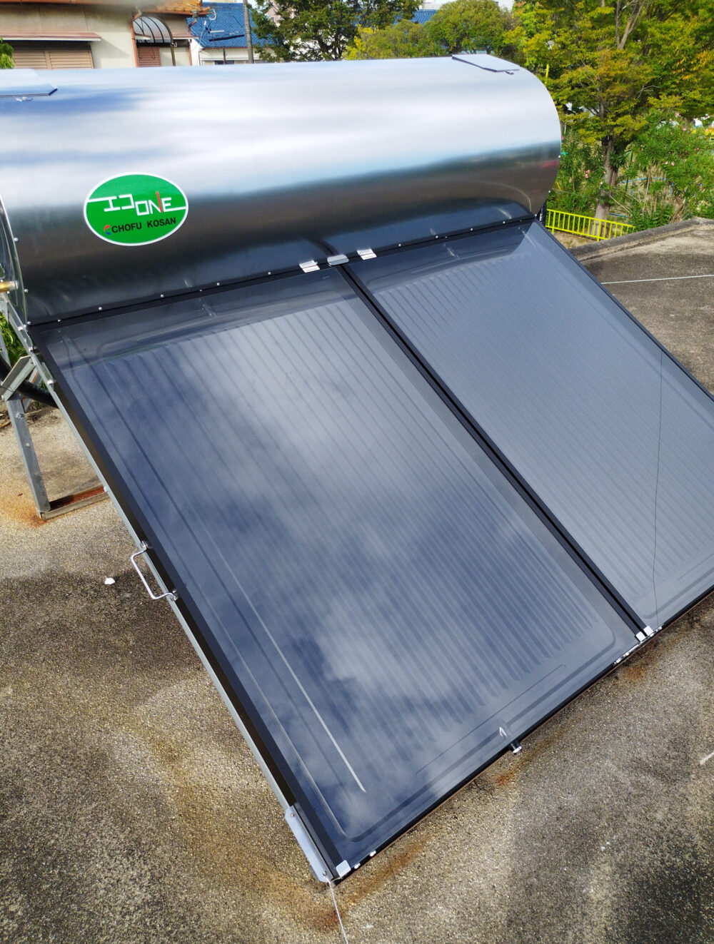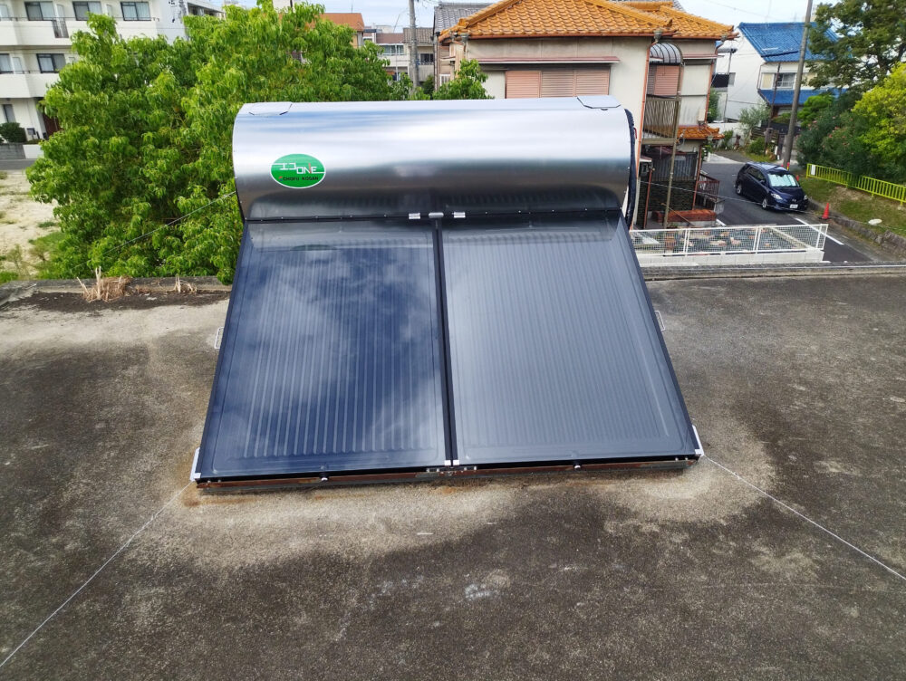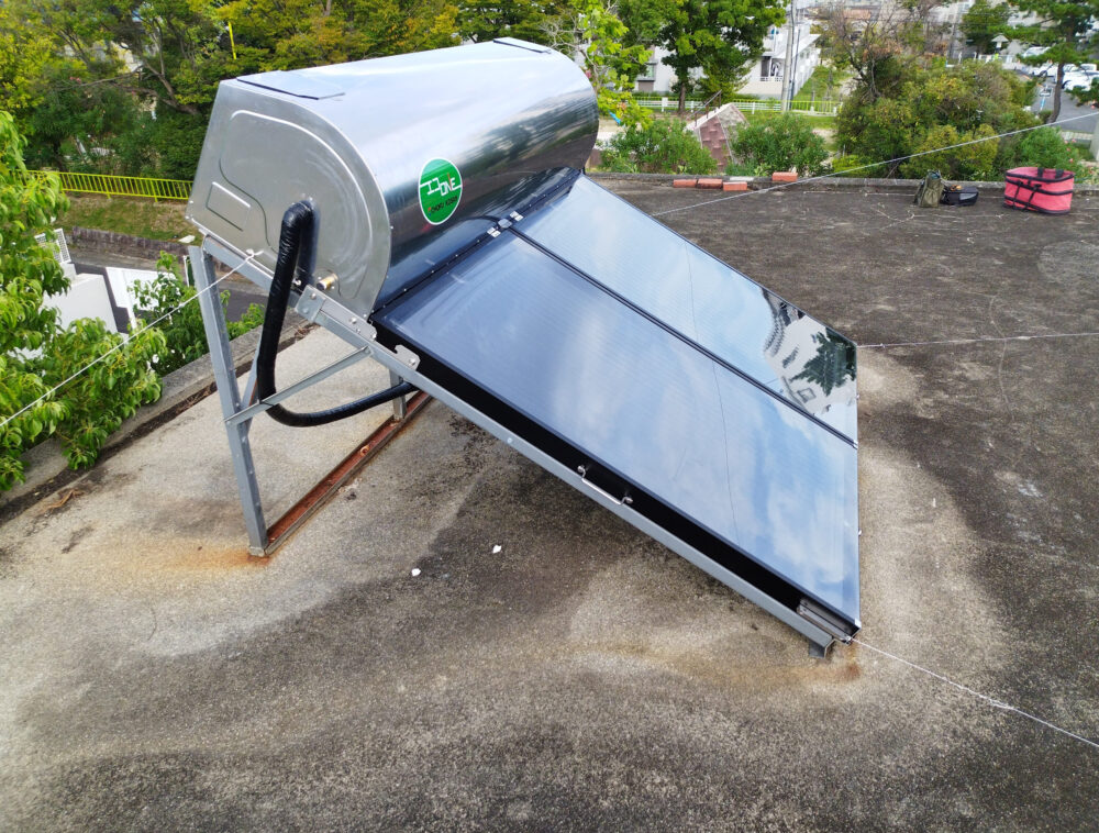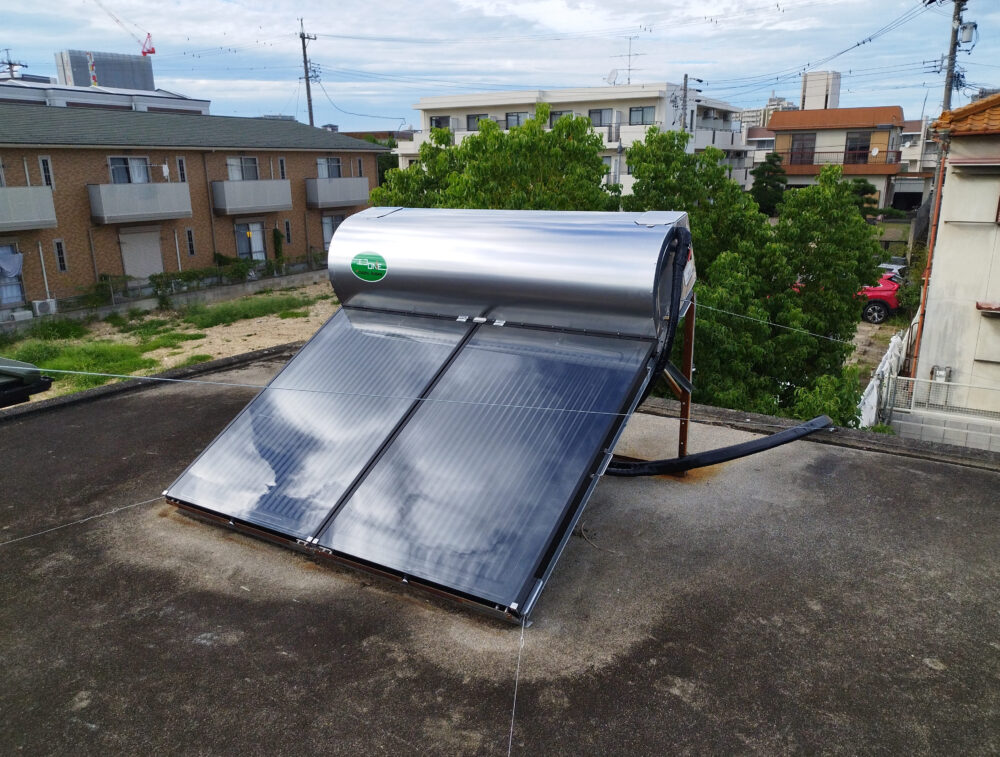 屋根置設置その他 2025.09.24 名古屋市 N様 製品名:長府工産 自然循環形太陽熱温水器 CN-EN230 2階屋根上の太陽熱温水器を撤去し、 「長府工産 CH‒EN230」を設置しました。 架台は今までお使いだった物を再利用しています。 施工業者:M・M・C
